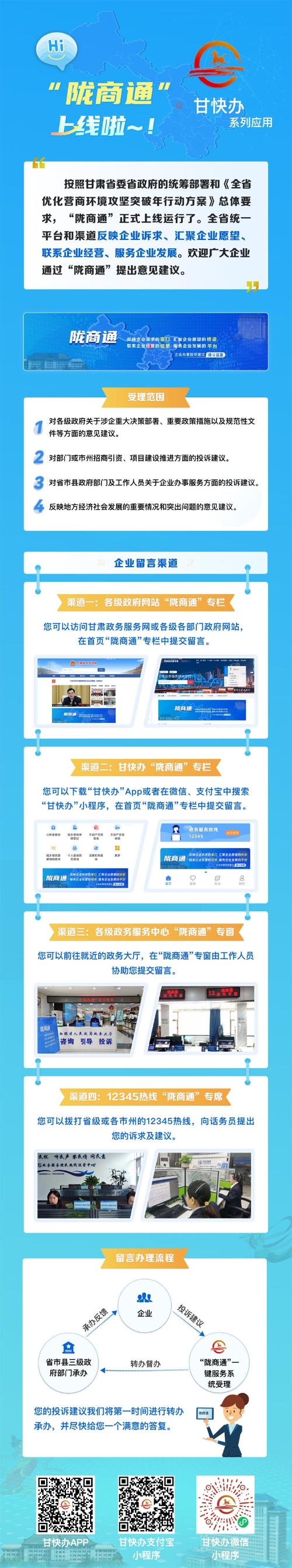 为助力优化营商环境,按照省委、省政府部署,“陇商通”一键服务专栏上线试运行,欢迎广大企业提出意见建议。